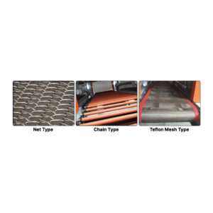Standard configuration is net conveyor . Mesh conveyor and chain conveyor need to be customized.