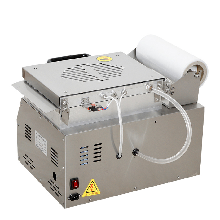 Desktop manual vacuum skin tray sealing packaging machine is suitable for vacuum skin fresh-keeping packaging of cooked food, cold fresh meat, seafood, fast food and so on. The equipment has compact design, reasonable structure and simple operation. It is equipped with a small vacuum pump and OMRON temperature control system. It could provide stores and small-scale food processing units with vacuum skin food packaging with Quality assurance, fresh preservation, Color preserving, shape maintenance and Flavor preservation.