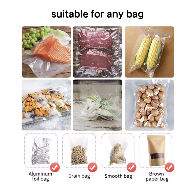 Wide Range of Applications: Vacuum packaging machine uses plastic or plastic foil as packaging material to vacuum package the liquid, solid, powdered and paste food, fruit, pickles, preserved fruit, chemicals, herbs, electronic components and precision instruments to prevent oxidation, mildew, moth and being rot and damp, and to extend shelf life. Especially applicable for tea, food, medicine, shops, research institutions and other industries, with features of a beautiful appearance, compact structure, high efficiency, easy operation, easy to move and so on.