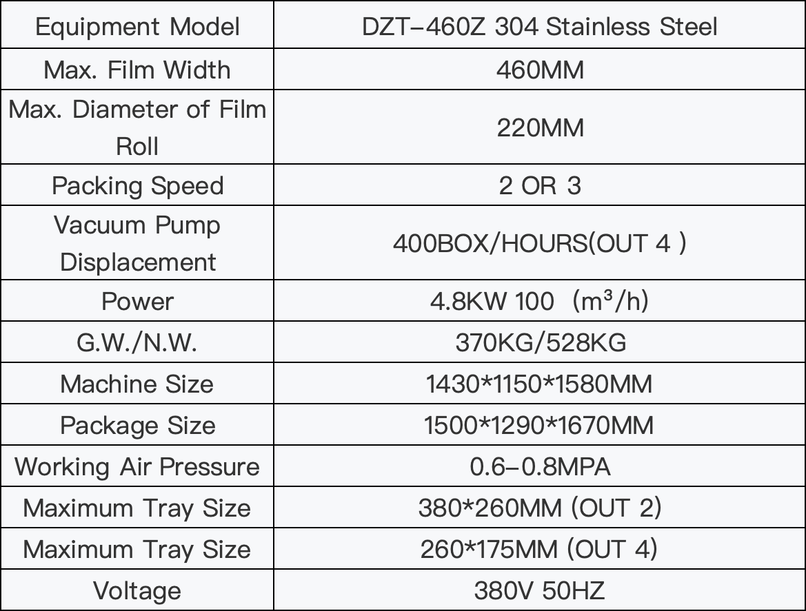 Equipment Model | DZT-460Z 304 Stainless Steel |